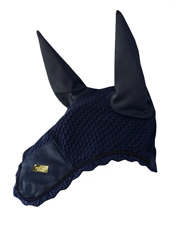 Luxurious ear net in blue with golden metal detail, perfectly matched with our navy products.
