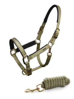 Equestrian Stockholm Leather Headcollar & Lead Sycamore Green