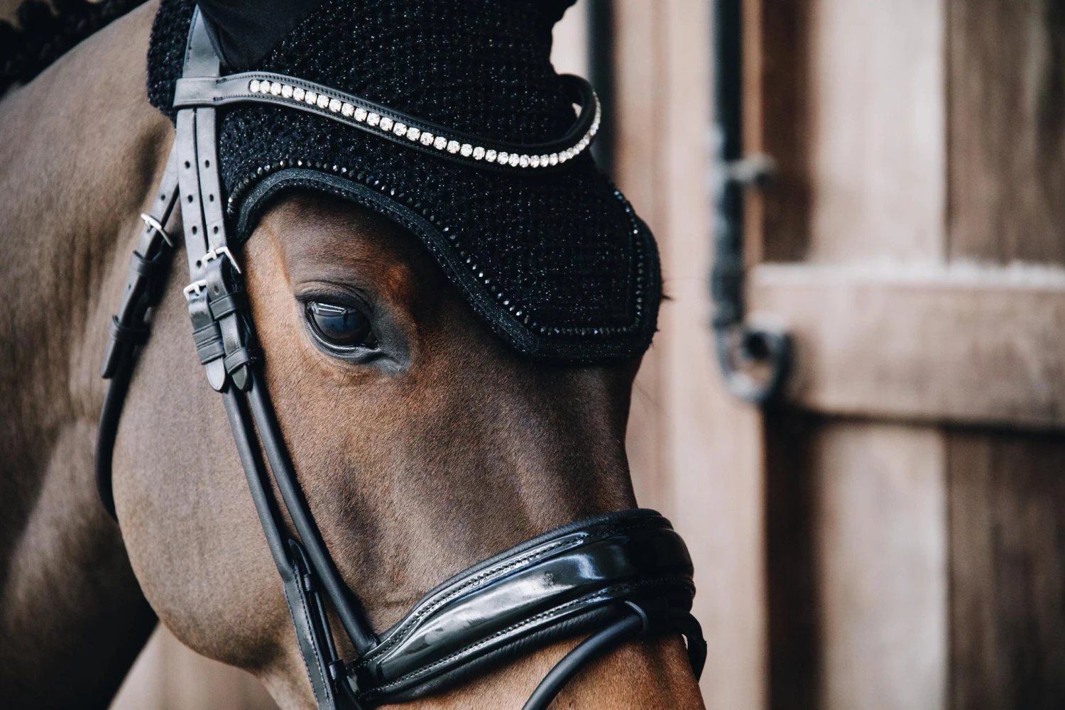 Our Fly Veil Glitter Band is a combination of the modern American look and Kentucky Horsewearβs expertise. This fly veil is hand knitted for better durability, topped off with pearls and a glitter band in the same color as the fly veil. The Fly Veil Glitter Band protects the horseβs ears against flies and sound while riding. The material around the ears is stretch and slim fit. The soundproof ears donβt slide off and offer a perfect fit as they are a little bit thinner. They remain equally soundproof. Therefore, the horse doesnβt get distracted by noise. The neck part is longer so it canβt slip. The Fly Veil Glitter Band does not have a visible logo, therefore rider or sponsors can embroider their own logo. Hand washing only.